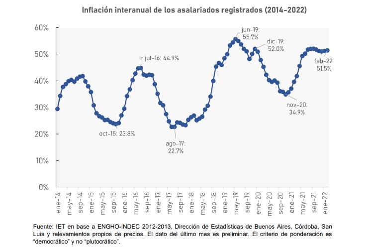 De este modo, en los dos primeros meses del año, la inflación alcanzó un 8,7%. En tanto, en los últimos doce meses fue del 51,5%.